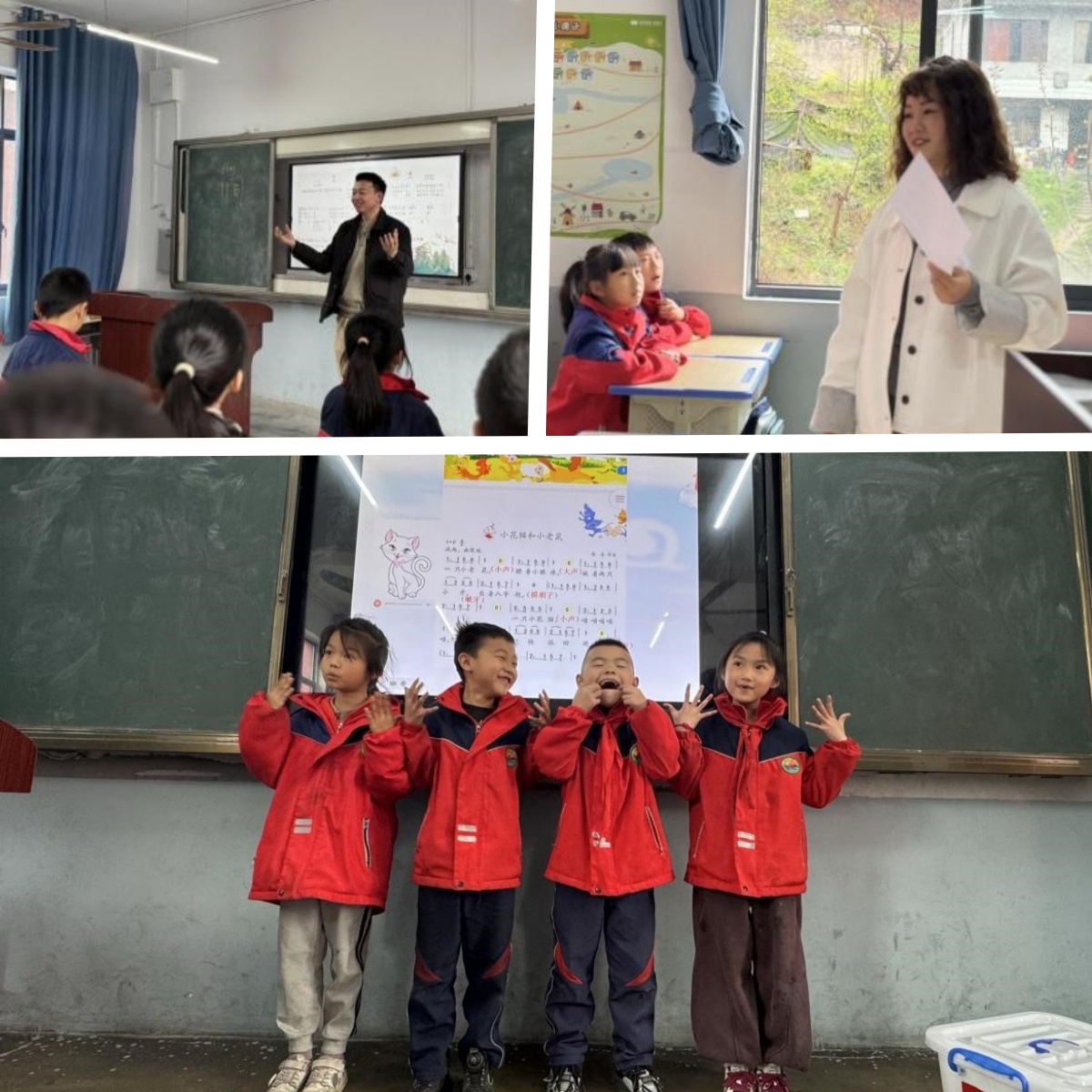 “跑调有什么关系呢?俄罗斯专享会的歌声能震落崖壁上的小野花!”音乐教师李秀梅带着高年级孩子们唱“小美满”,带着低年级孩子唱“两只小花猫”。表演+演唱